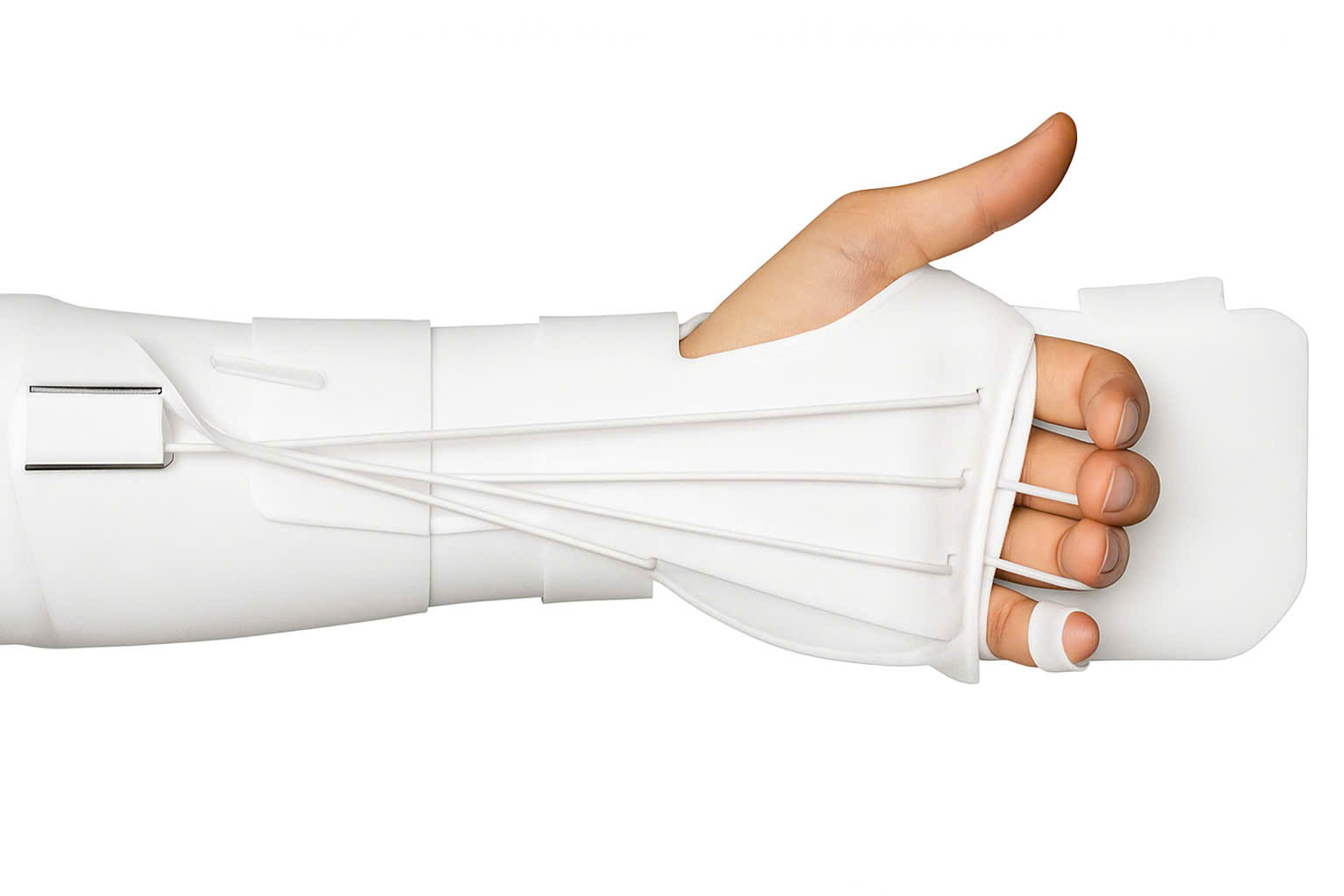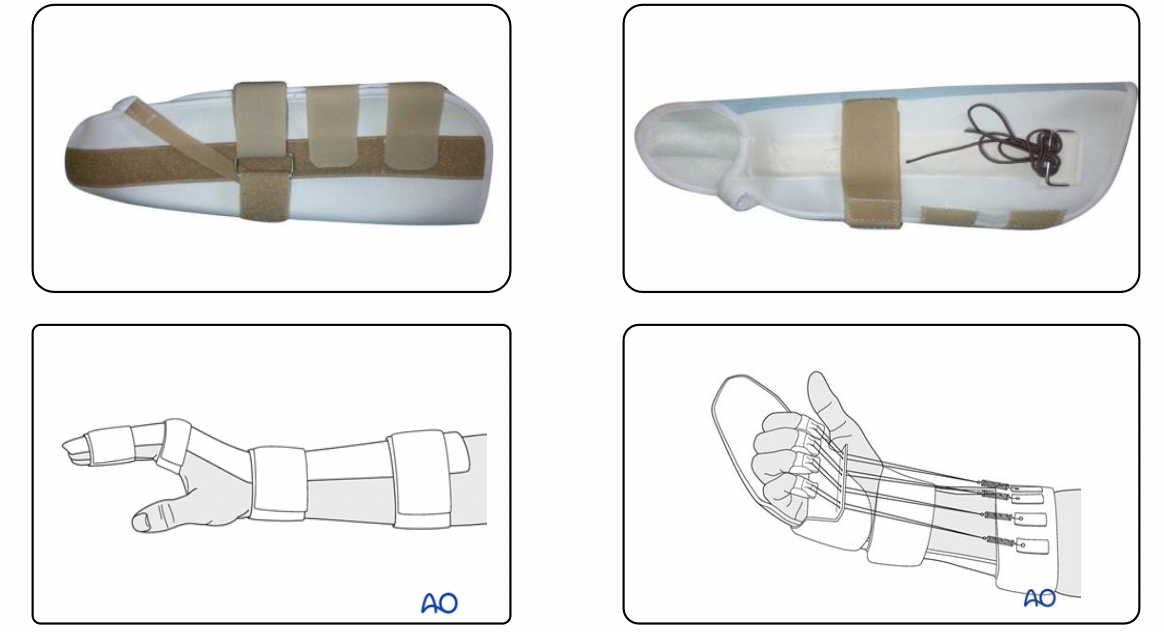 - Hệ thống dây đai và dây thun kèm theo để hỗ trợ gấp các ngón tay.